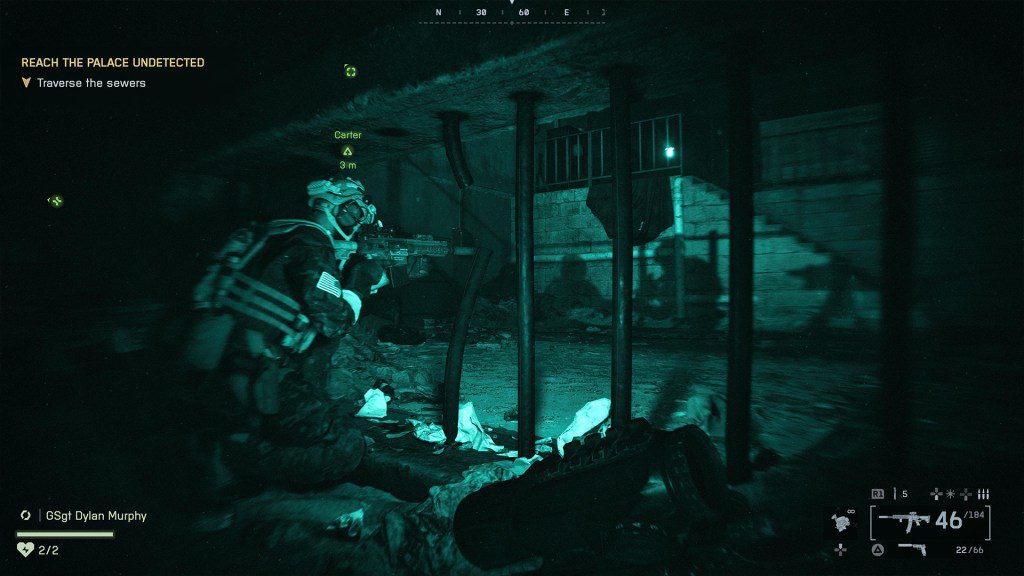 The campaign is at its best when it’s showing off gorgeous destruction in scripted sequences. An early game HALO jump sees smoke and condensation caking on the player’s visor as they plummet in freefall toward a warzone in Gibraltar. Another has the squad sneaking through the alleyways of Cairo using night vision goggles while avoiding a protest that’s boiling over into a full-blown riot in the streets.