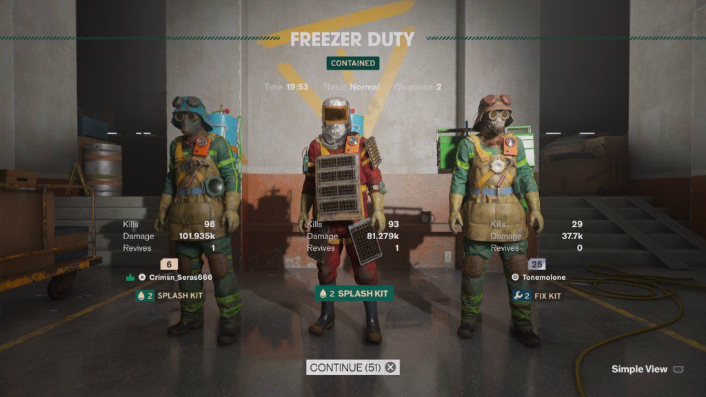 Players can choose from three Crisis Kits, which serve as specific class specializations. The Fix Kit is a wrench-wielding mechanic, the Jump Kit is an electrician, and the Splash Kit is a poor man’s firefighter. Weapons and gear (like grenades) are interchangeable between the kits, but each serves a specific purpose. Around each level, certain jobs must be completed, like fixing machines dedicated to powering fans or workstations, which can be done more quickly by Fix and Jump classes. For the Splash players, their glob-shooting hose can heal their teammates, put out dangerous fires, and weaken the Hiss, who are vulnerable to H20 (and fire, ice, and radiation!). The last bit is key, too, because players themselves can quickly fall victim to environmental hazards and having a Splash Kit handy can quickly correct a series of mishaps.