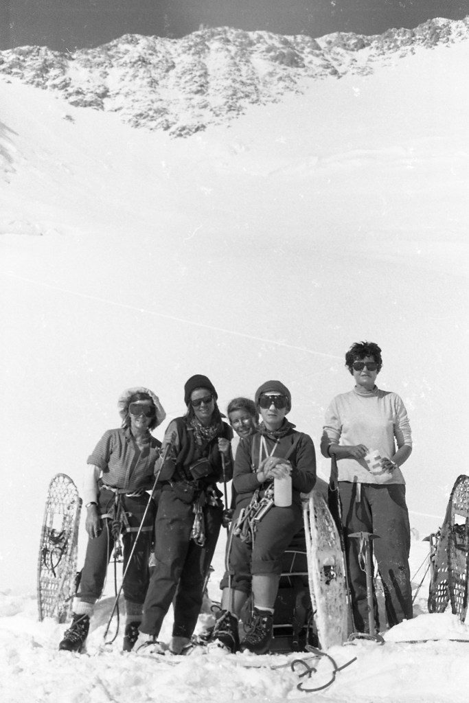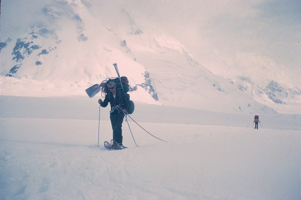 The 1970 Denali Damsels team halfway up their summit attempt.