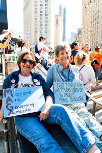Trudy Moses, 72, and Nancy Kirk, 79, are retired teachers who worked for over three decades in New York City schools. They tell Rolling Stone they protested for abortion access in the 1960s and against President Trump after his first inauguration — and attended the march to remind elders that everyone is vulnerable under the current administration. “We’re retired, so we can come out and fight for the people that have to be working today,” Moses says.