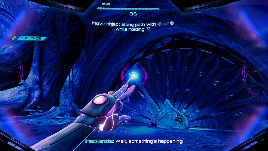 Another reversion that, for now, seems ill-advised is pairing Samus up with other characters. A third of the way through the demo, players meet an NPC named Mackenzie, a Galactic Federation technician. Putting it simply, Mackenzie’s a dork; a sheepish science guy whose awe of Samus and bumbling demeanor set the duo up as a typical odd couple.