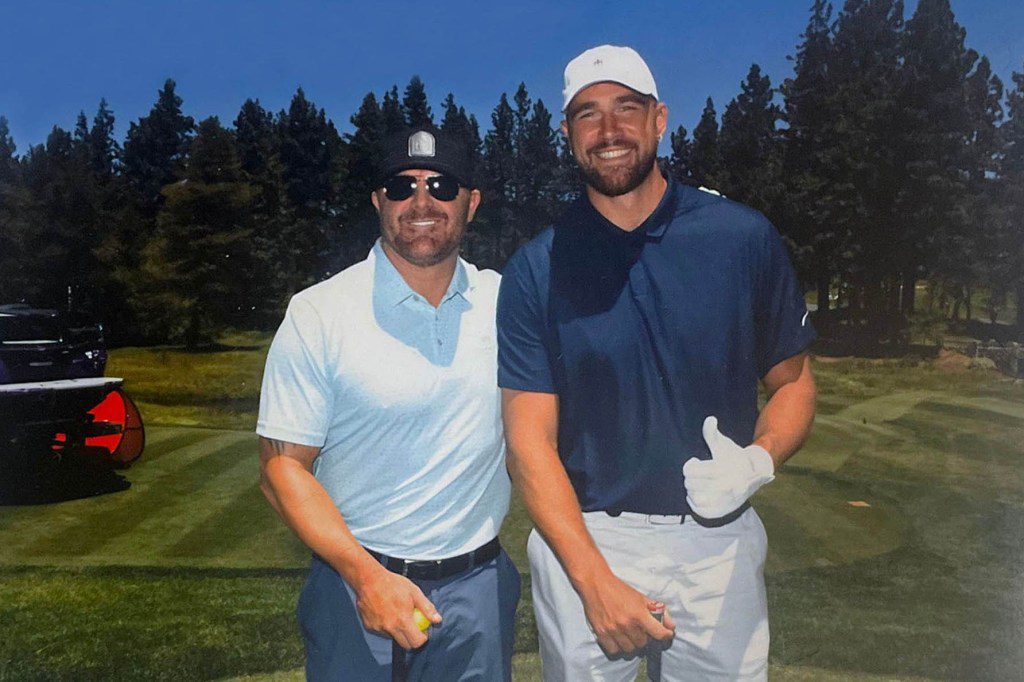Bowyer poses with Travis Kelce, who he met at a casino event.