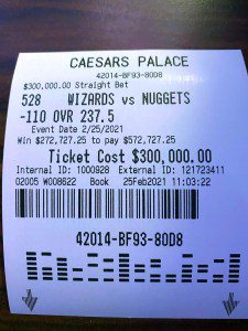 An old ticket of Bowyer’s showing a $300,000 bet on a basketball game