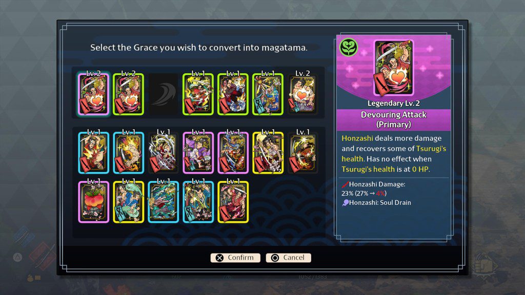 While it’s easy to get hit accidentally because a poorly chosen move with a janky animation throws the guardian’s body into danger, the issue is doubled by the nature of having two characters on screen at once. In Hades dashing is a fast way out of harm’s way, but it can also be wielded offensively. Here, even if a dash is imbued with elemental or status effect damage, you’re still dragging along the dead weight of the Kagura. The gameplay isn’t as fast or hectic as others of this type; but while it’s easy enough to dodge a telegraphed strike from a boss once, it’s very likely that the poor schmuck stuck in your wake will take the brunt of the damage.