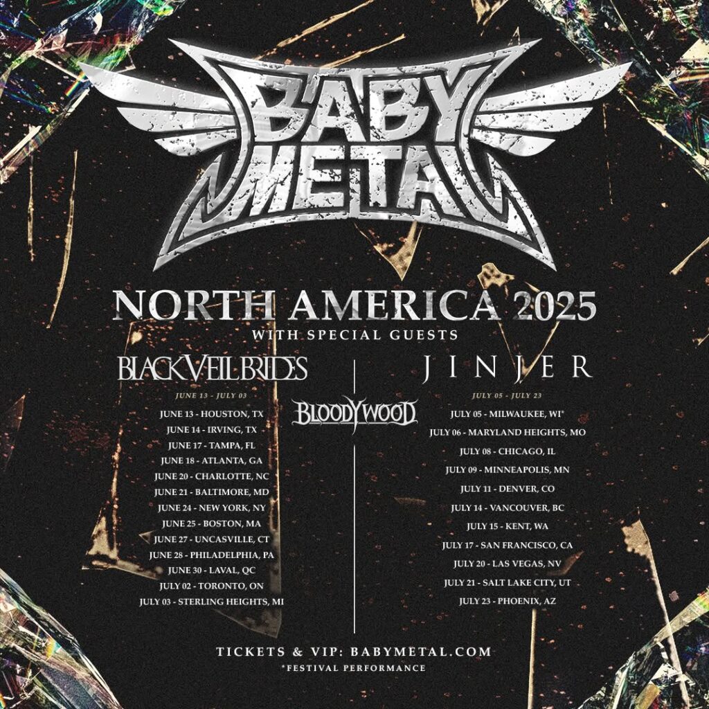 Japanese kawaii metal band Babymetal will return to North America in June and July for shows with Black Veil Brides, Jinjer, and Bloodywood each joining them on select dates. The NYC show is on June 24 at The Theater at MSG with Black Veil Brides and Bloodywood, and you can see all dates here.