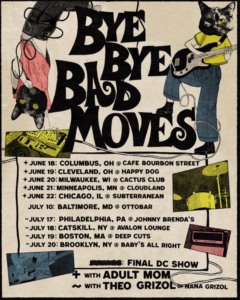 DC power-pop punks Bad Moves are calling it a day; they write, “It’s been an excellent decade rockin with y’all, but the time has come for Bad Moves to say farewell. No bad vibes here! Life changes have brought us to a crossroads and we thought the best move would be to party with the kids who wanna party with us one last time.” They’ve announce East Coast and Midwest shows with Adult Mom and Theo Grizol (of Nana Grizol), including Brooklyn’s Baby’s All Right on July 20. Still to be announced are two final DC shows; stay tuned.