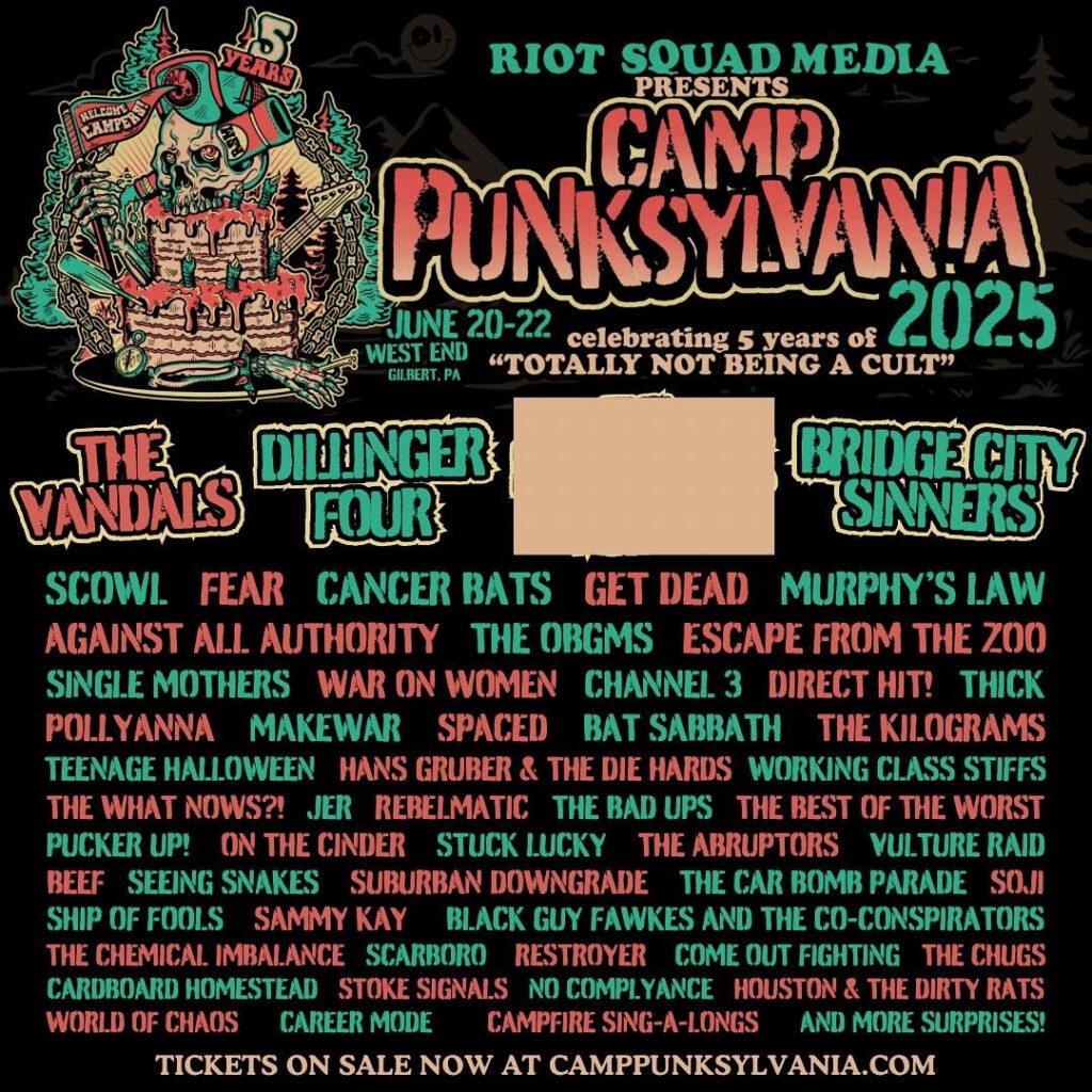 Gilbert, PA’s Camp Punksylvania continues adding to its 2025 lineup, which happens on June-20-22 at West End Fairgrounds. The latest additions include Dillinger Four, Scowl, THICK, and Working Class Stiffs, joining The Vandals, Bridge City Sinners, Fear, Cancer Bats, Murphy’s Law, Against All Authority, The OBGMS, Single Mothers, War on Women, Teenage Halloween, Jer, and more. Tickets are on sale now.