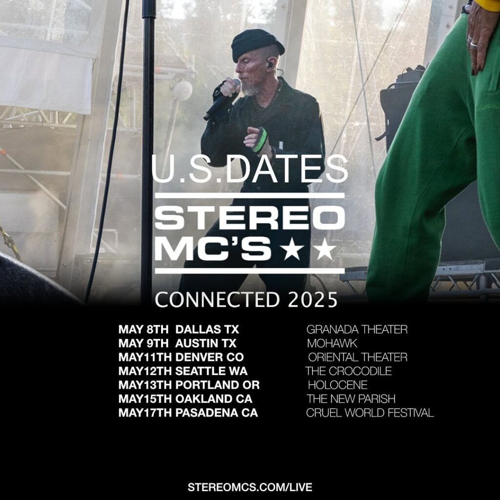 UK dance vets Stereo MC’s just played their first North American shows in 24 years back in January and will be back in the US in May for the 2025 Cruel World Festival. They’ve scheduled some headline shows leading up to that, hitting Dallas, Austin, Denver, Seattle, Portland, and Oakland.